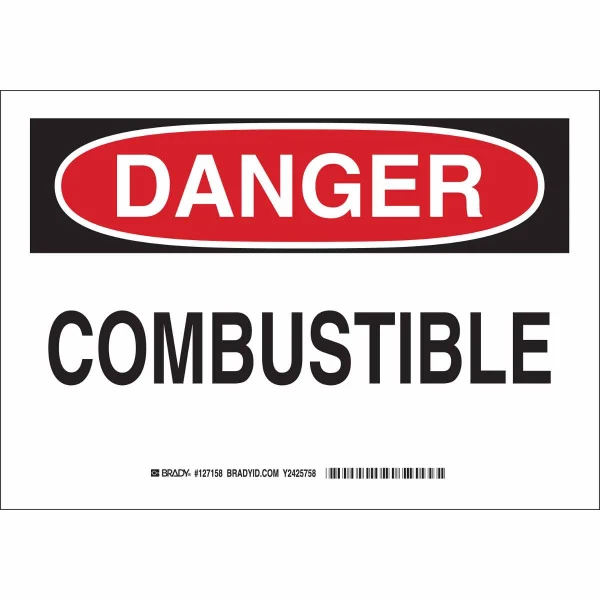DANGER Combustible Sign, 10" H x 14" W x 0.006" D, Polyester