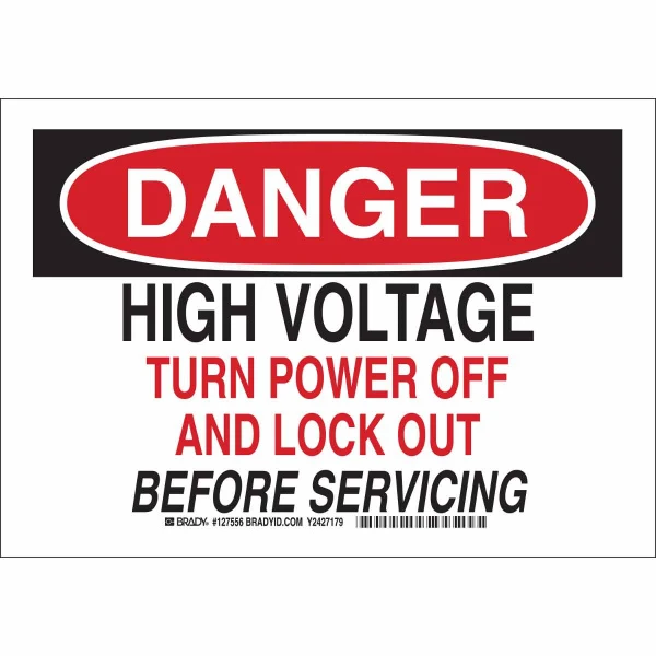 DANGER High Voltage Turn Power Off And Lock Out Before Servicing Sign, 10" H x 14" W x 0.06" D, Polystyrene