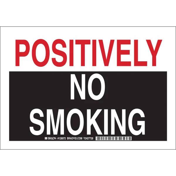 Positively No Smoking Sign, 10" H x 14" W x 0.035" D, Aluminum