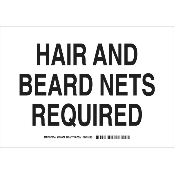 Hair And Beard Nets Required Sign, 7" H x 10" W x 0.06" D, Polystyrene