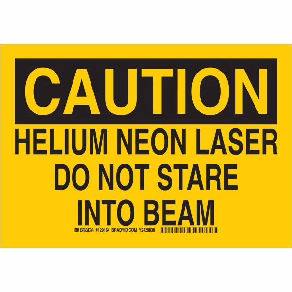 CAUTION Helium Neon Laser Do Not Stare Into Beam Sign, 10" H x 14" W x 0.006" D, Polyester