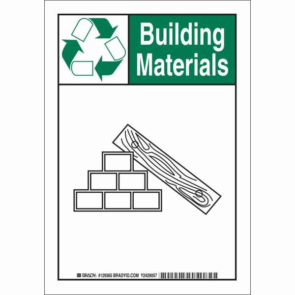 Recycling Building Materials Sign, 14" H x 10" W x 0.035" D, Aluminum