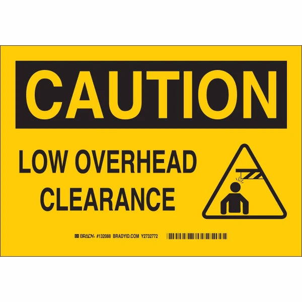 CAUTION Low Overhead Clearance w/Pictogram Sign, 7" H x 10" W x 0.1" D, Fiberglass
