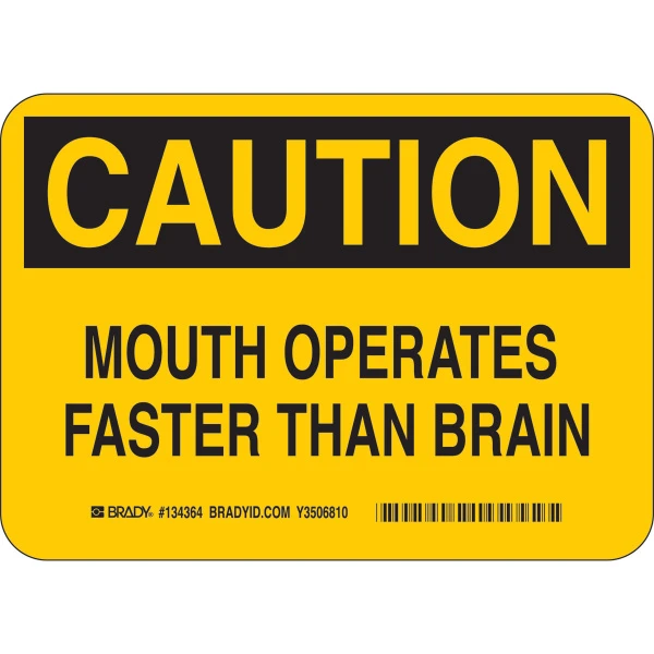 CAUTION Mouth Operates Faster Than Brain Sign, 7 " H x 5 " W x 0.06 " D, Polystyrene