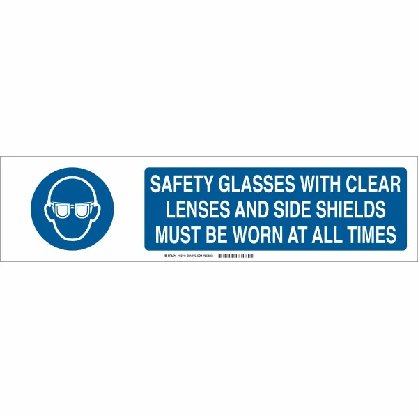 Safety Glasses With Clear Lenses And Side Shields Must Be Worn At All Times Sign, 6" H x 23.875" W x 0.035" D, Aluminum