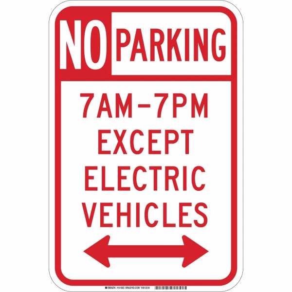 No Parking 7Am-7Pm Except Electric Vehicles Sign, 18" H x 12" W x 0.090" D, Aluminum, Arrow Direction Dual
