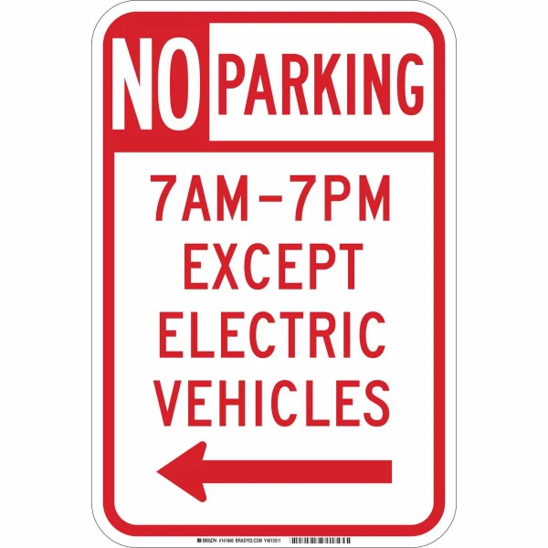 No Parking 7Am-7Pm Except Electric Vehicles Sign, 18" H x 12" W x 0.090" D, Aluminum, Arrow Direction Left