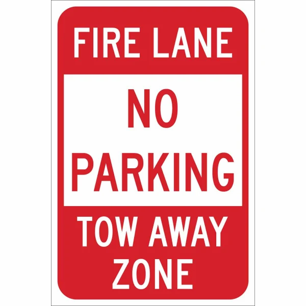 No Parking Fire Lane/Tow Away Zone Sign, 18" H x 12" W x 0.090" D, Red on White