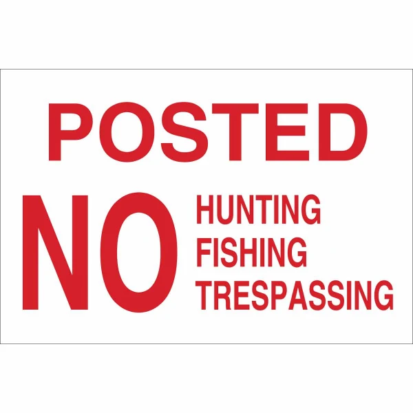 POSTED No Hunting Fishing Trespassing Sign, 12" H x 18" W x 0.090" D, Red on White