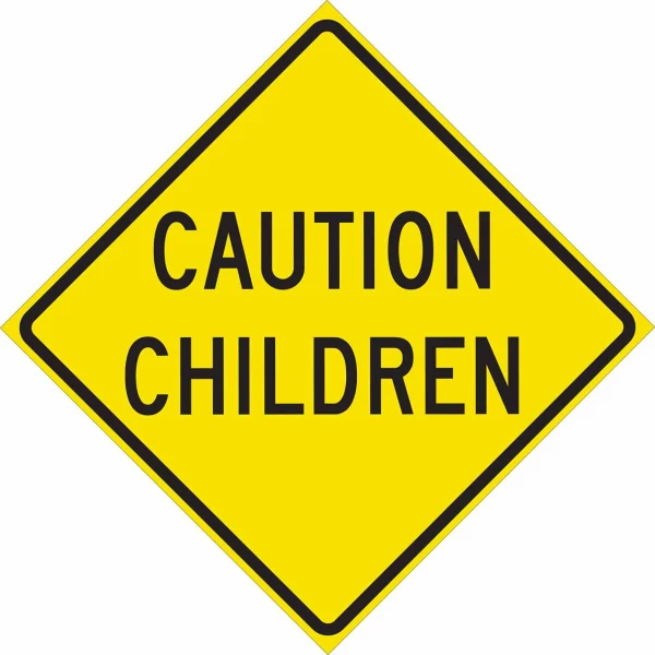 Caution Children Sign, 24" H x 24" W x 0.090" D, Aluminum