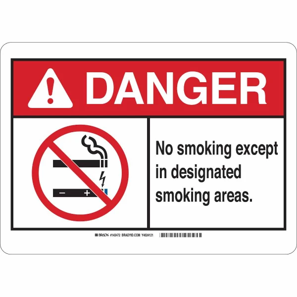 DANGER No Smoking Except In Designated Smoking Areas. Sign, 7" H x 10" W x 0.06" D, Polystyrene