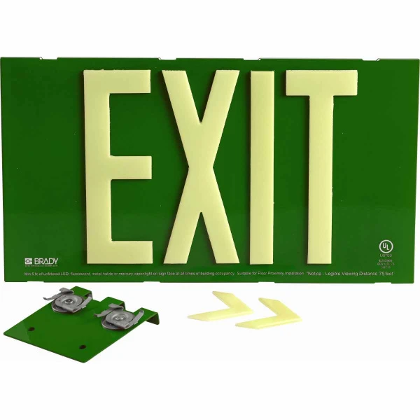 BradyGlo Exit Sign, Green, 8.75" H x 15.75" W x .25" D, Single Sided T-Bar