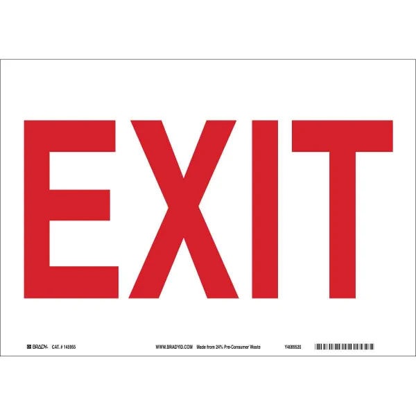 B558 10X14 RED/WHT SUSTAINABLE EXIT SIGN