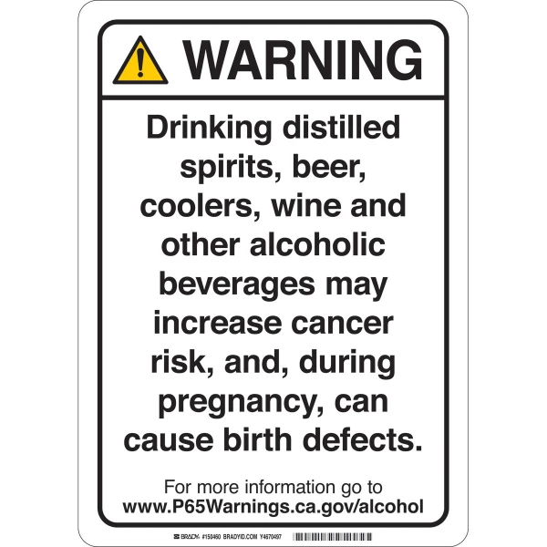 Prop 65 Regulatory Sign Alcohol 10 inch x 7 inch Polyester Black on White