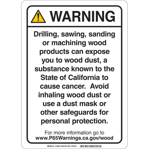 Prop 65 Regulatory Sign Wood Working 14 inch x 10 inch Aluminum Black on White