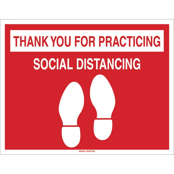 Anti Skid Floor Sign: Vinyl, Red on White, Thank You For Practicing Social Distancing, 14" H x 18" W