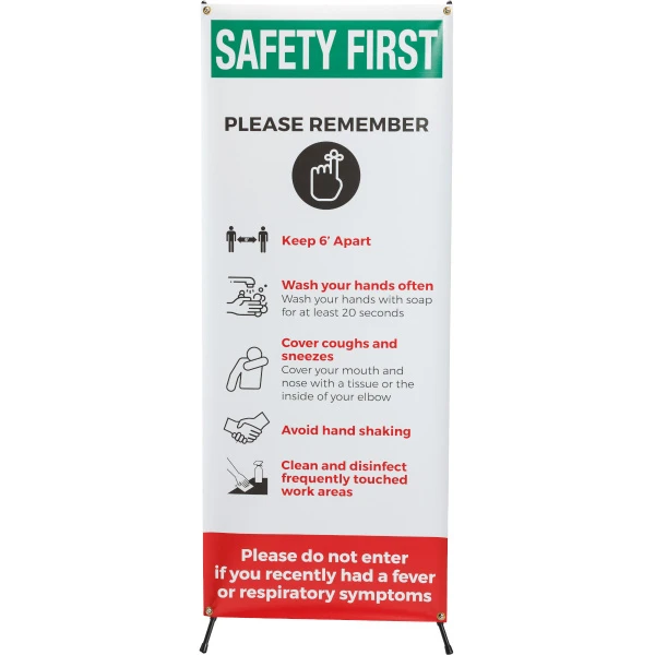 Safety First Social Distancing Banner Sign Vinyl 60 in H x 24 in W BK on WH