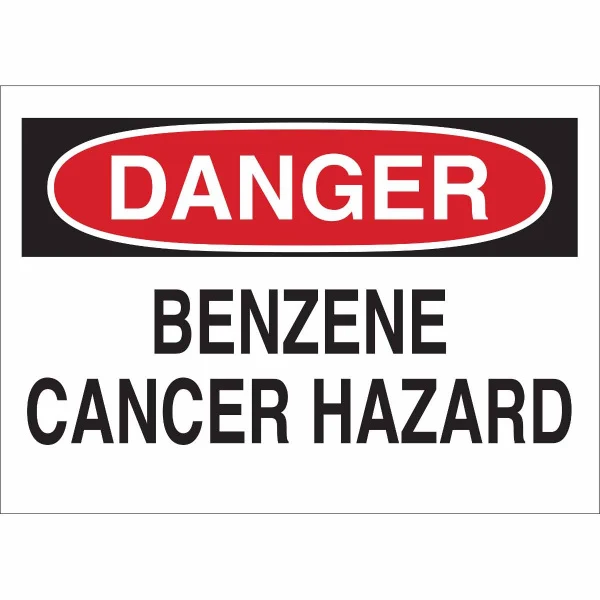DANGER Benzene Cancer Hazard Sign, 7" H x 10" W x 0.06" D, Polystyrene