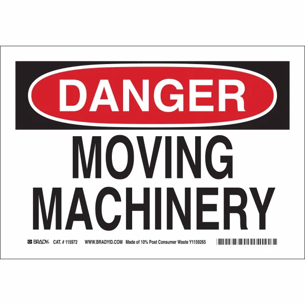 DANGER Moving Machinery Sign, 7" H x 10" W x 0.06" D, Polystyrene