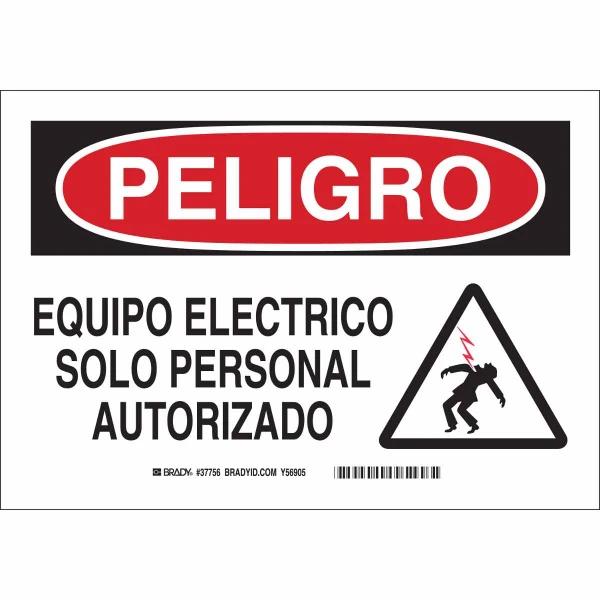Bilingual DANGER Equipo Electrico Solo Personal Autorizado w/Pictogram Sign, 7" H x 10" W x 0.006" D, Polyester