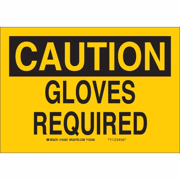 CAUTION Gloves Required Sign, 7" H x 10" W x 0.035" D, Aluminum