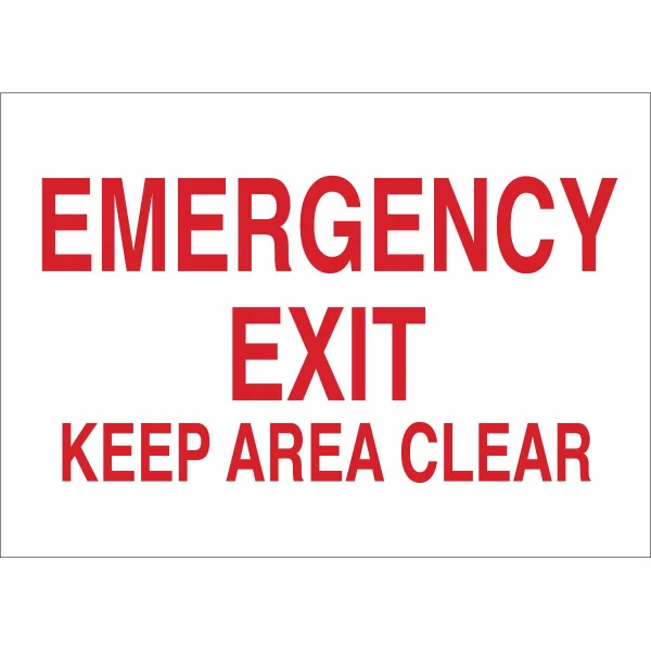 Emergency Exit Keep Area Clear Sign, 10" H x 14" W x 0.035" D