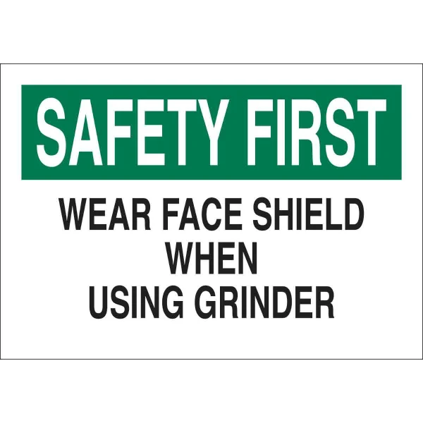 SAFETY FIRST Wear Face Shield When Using Grinder Sign, 7" H x 10" W x 0.035" D, Aluminum