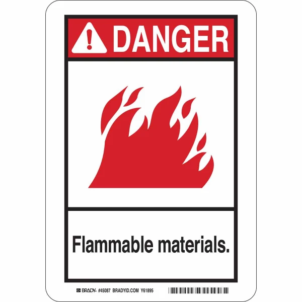 DANGER Flammable Materials. Sign, 10" H x 7" W x 0.1" D, Fiberglass