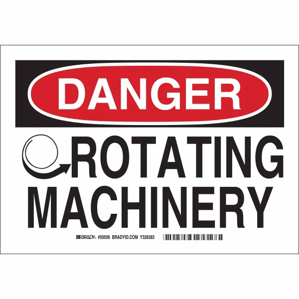 DANGER Rotating Machinery Sign, 7" H x 10" W x 0.006" D, Polyester