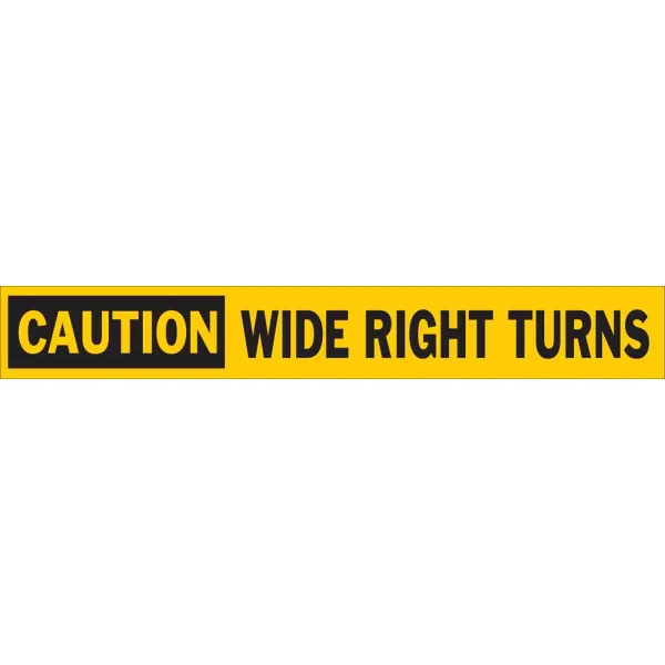 CAUTION Wide Right Turns Sign, 2" H x 24" W x 0.004" D, Vinyl