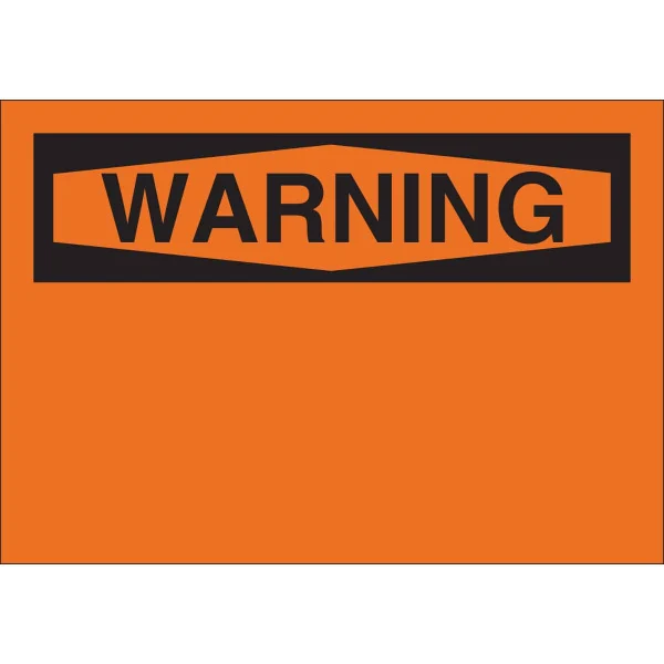 Blank WARNING Sign, 10" H x 14" W x 0.1" D, Black on Orange, Fiberglass