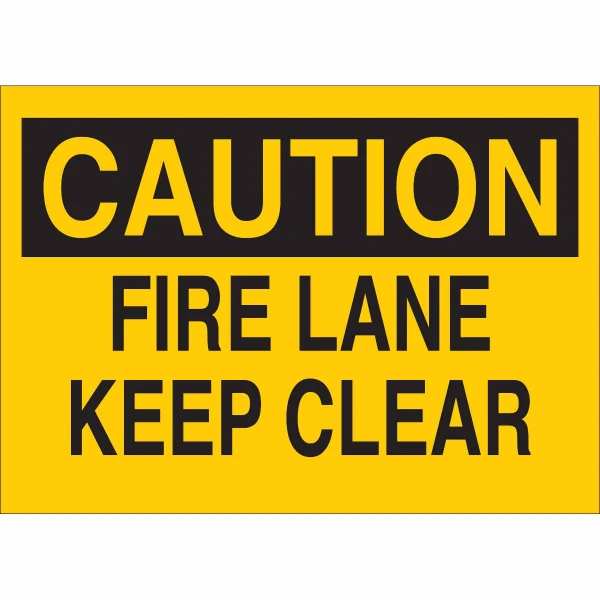 CAUTION Fire Lane Keep Clear Sign, 10" H x 14" W x 0.1" D, Black on Yellow, Fiberglass