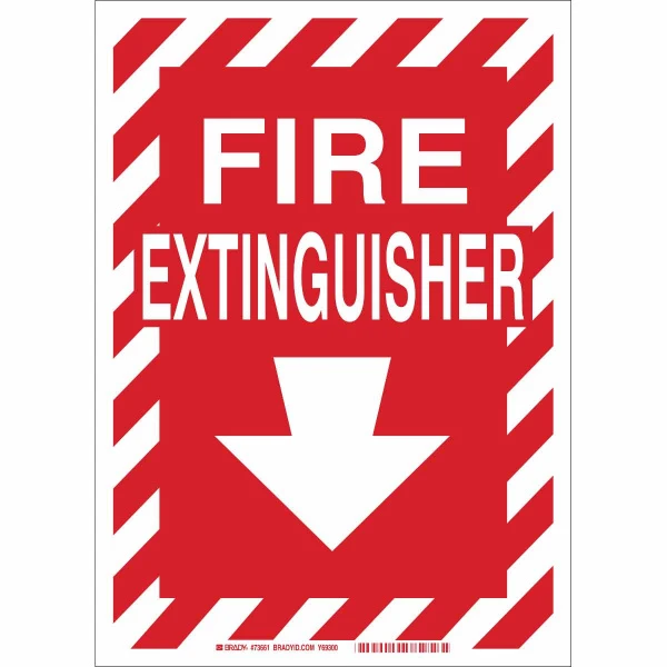 BradyGlo Fire Extinguisher Sign, 0.008" D, Red on Glow, Polyester