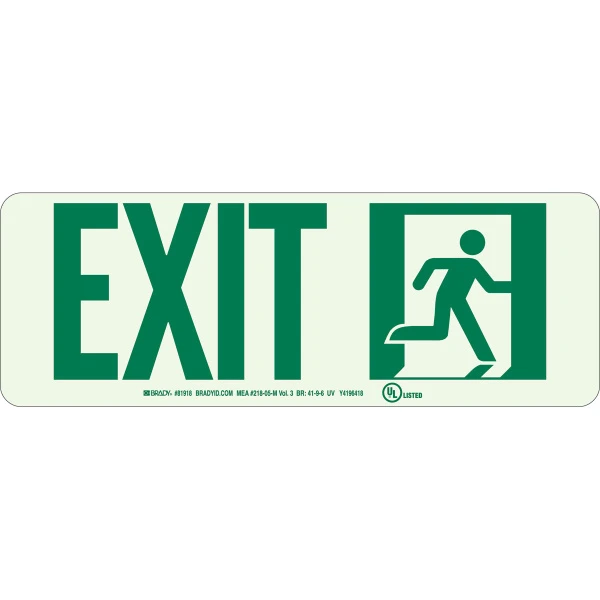 BradyGlo Exit With Running Man Right Sign, 5" H x 14" W x 0.0096" D