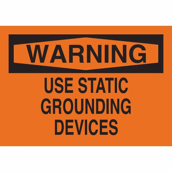 WARNING Use Static Grounding Devices Sign, 10" H x 14" W x 0.006" D, Polyester