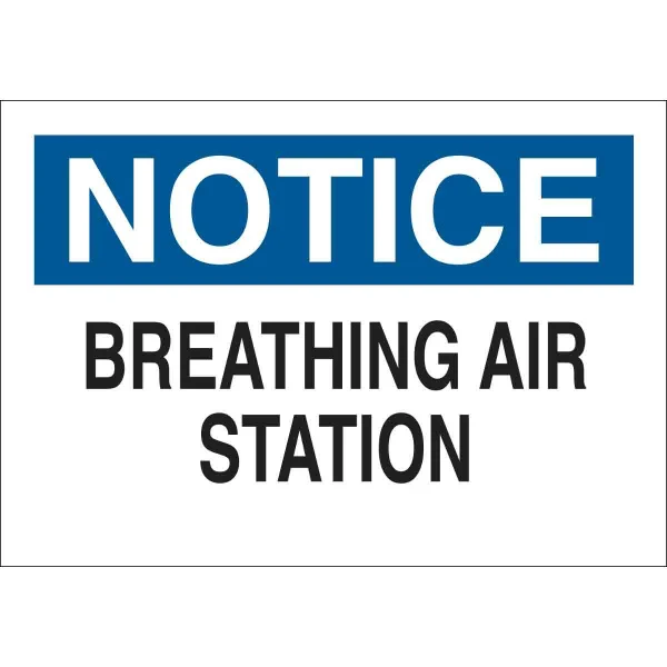 NOTICE Breathing Air Station Sign, 10" H x 14" W x 0.006" D, Polyester