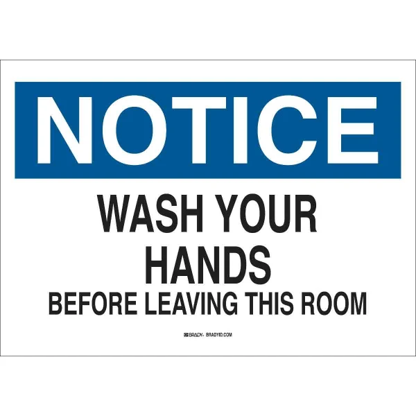 NOTICE Wash Your Hands Before Leaving This Room Sign, 7" H x 10" W x 0.006" D, Polyester