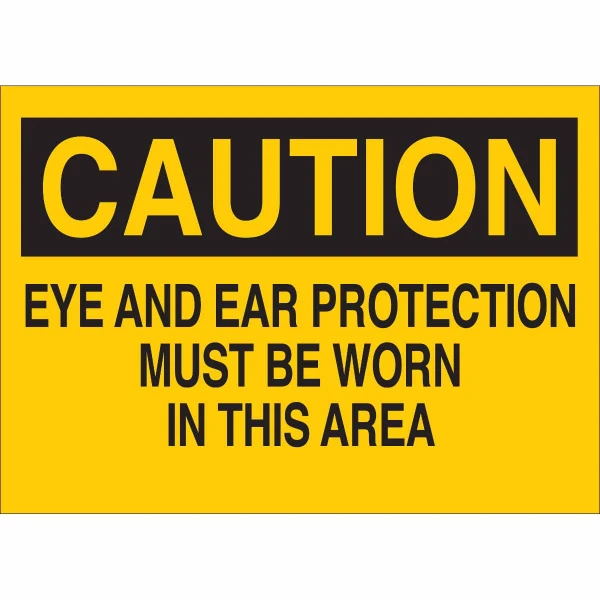 CAUTION Eye And Ear Protection Must Be Worn In This Area Sign, 10" H x 14" W x 0.006" D, Polyester