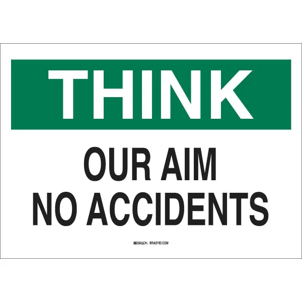 THINK Our Aim No Accidents Sign, 10" H x 14" W x 0.006" D, Polyester