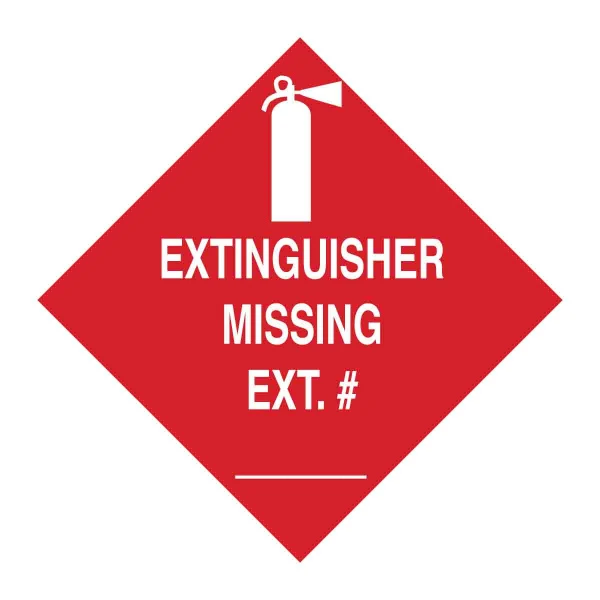 Extinguisher Missing Ext # Sign, 3.5" H x 3.5" W x 0.006" D, White on Red, Polyester