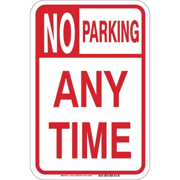 No Parking Any Time Sign, 18" H x 12" W x .035" D, Aluminum, Large Text