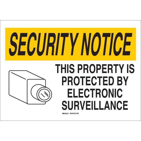 SECURITY NOTICE This Property Is Protected By Electronic Surveillance Sign, 14" H x 20" W x 0.06" D, Black/Yellow on White