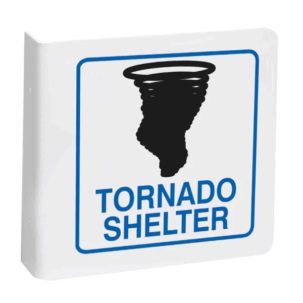 L Tornado Shelter Sign, 8" H x 8" W, Black/Blue on White,
