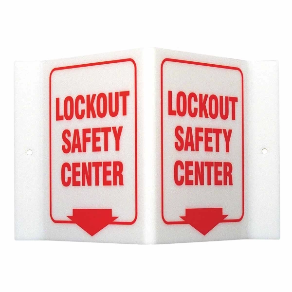 V Lockout safety Center Sign, 6" H x 9" W x 4" D, Acrylic