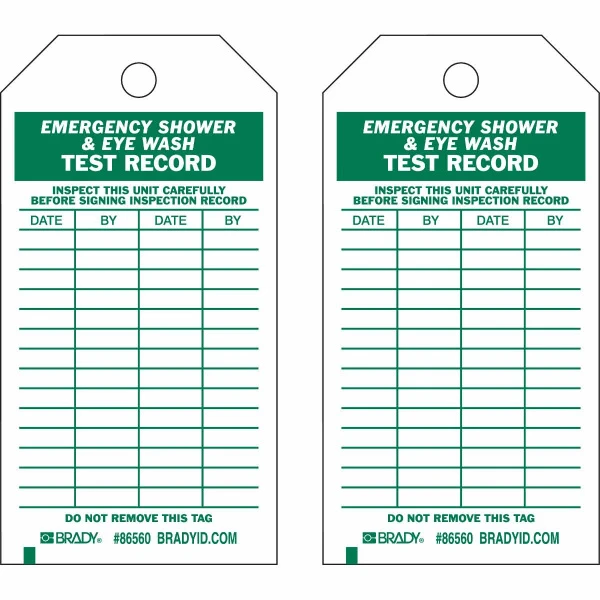 Test Record EMERGENCY SHOWER & EYEWASH TEST RECORD Polyester 5.75x3 GN/WH 10/PK